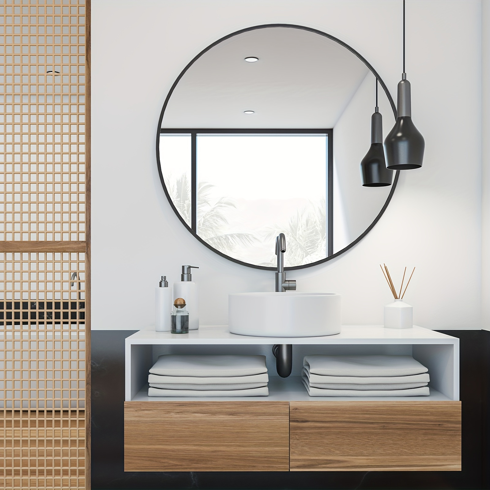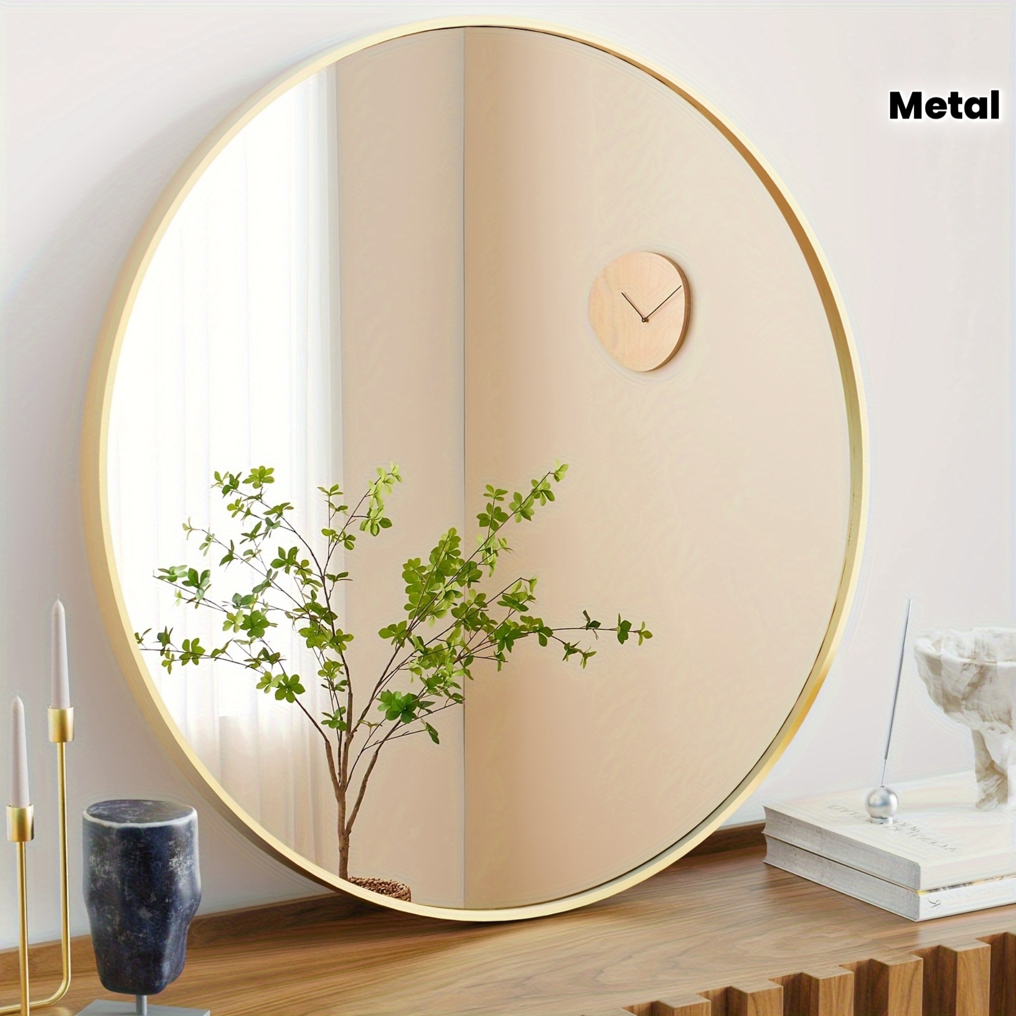 Round Metal Wall Mirror with - Matte Black or Golden Frame